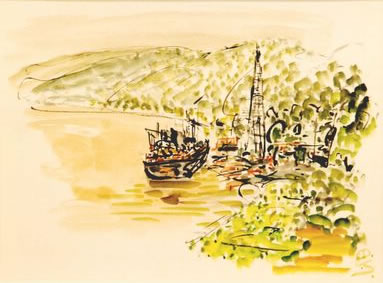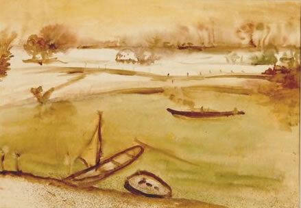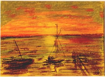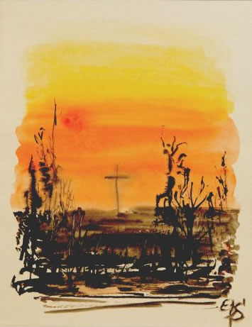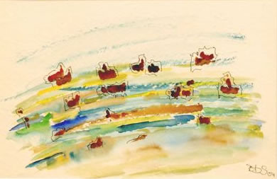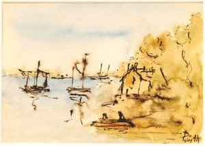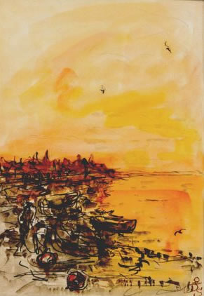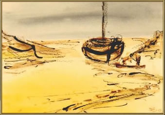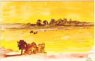 Solar Sandiges Flussbett mit Klippe - Acryl - 30 X 40 - 1994 - Katalog Nr. 001 |
